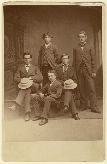 Based on a similar identified photograph in the collection this unmarked photograph features the second Shattuck crew team of 1875 and includes the following students:
