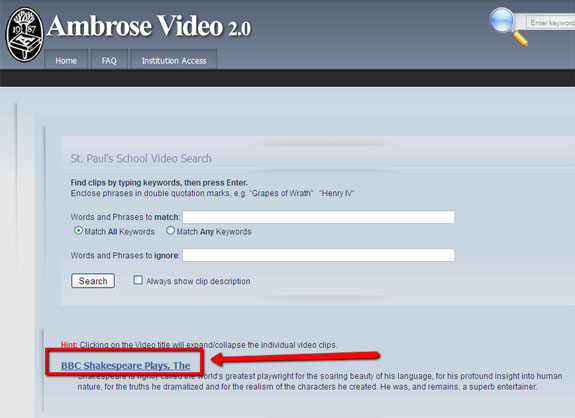 To enjoy these streaming films simply click HERE, or visit library.sps.edu and select BBC Shakespeare Video from the database bar on the right.