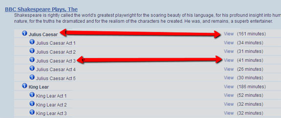Click “BBC Shakespeare Plays, The” to retrieve the list of plays: