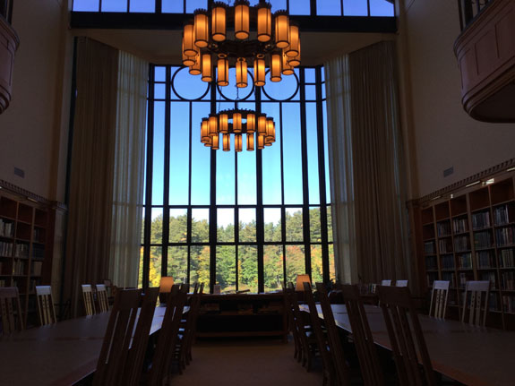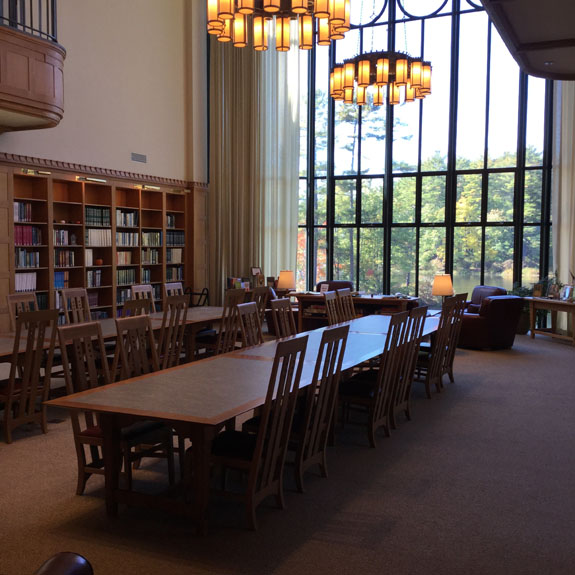 The new furniture is assembled an in place in the Baker Reading Room of Ohrstrom Library. Next time you are in the library make sure to stop in and see how things look. Bring your homework and try out the new study table and chairs and let us know what you think!