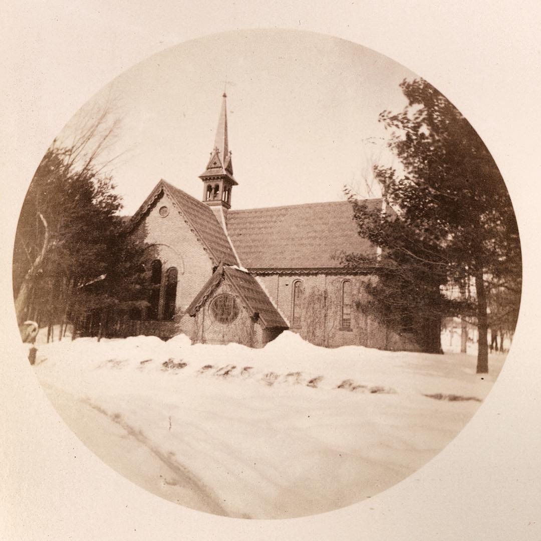 Winter has arrived in Millville, with a few light snowstorms this week. This photograph from the archives is of the Old Chapel in winter, showing a good deal more snow than we have on the ground today. This Kodak No. 2 photograph was taken in 1890 by student Theodore Mitchell Hastings, SPS Form of 1894.
