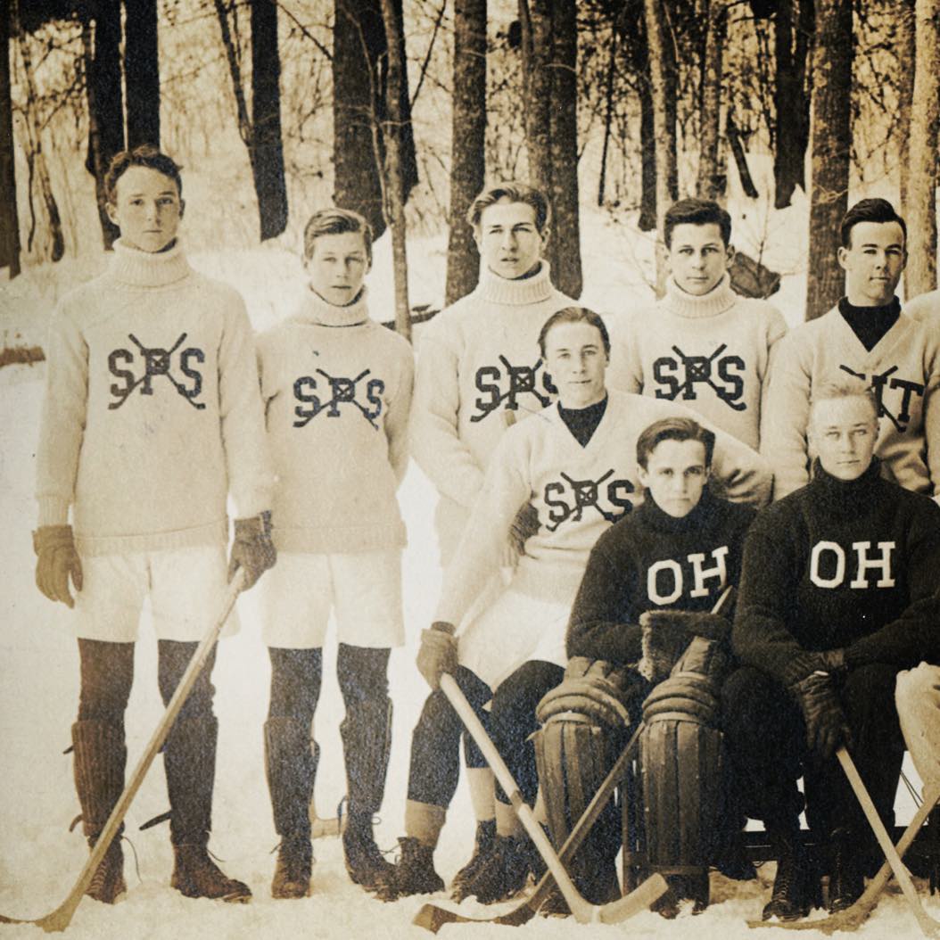 St. Paul’s School Hockey Team, 1908: This photograph features Hobart Amory Hare Baker, Form of 1909 – hockey legend Hobey Baker, second from the left.