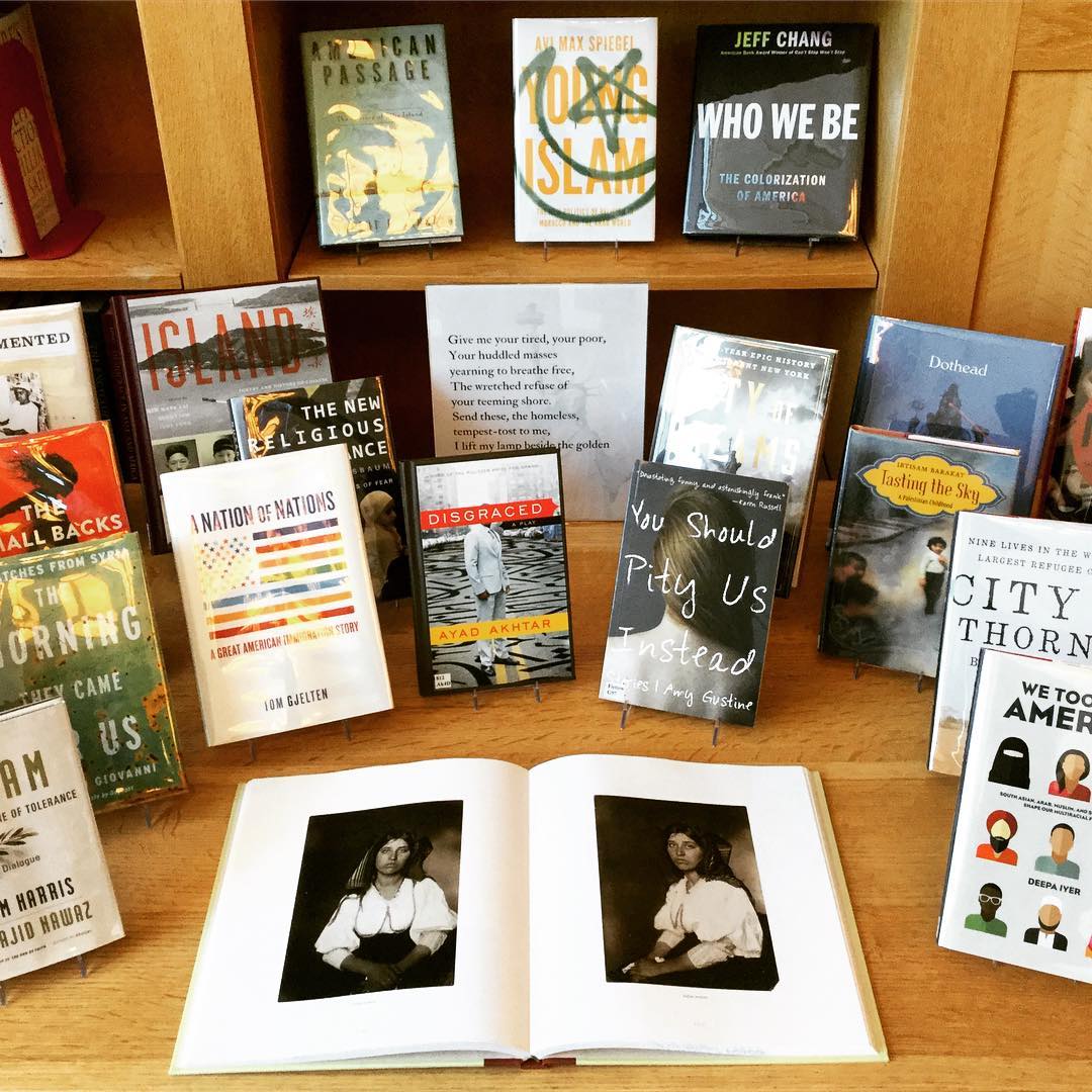 A new book display is up in the Baker Reading Room – a gathering of books dealing with immigration in America. The poem Home by Warsaw Shire accompanies the display and begins with: