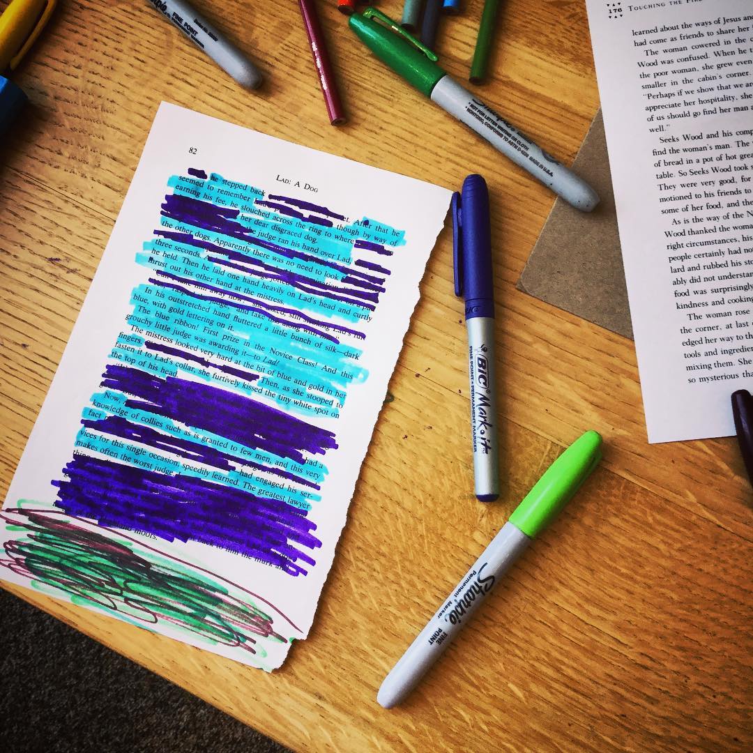 A little spontaneous black out poetry session underway in Ohrstrom’s Baker Reading Room – celebrate National Poetry Month by making one of your own!