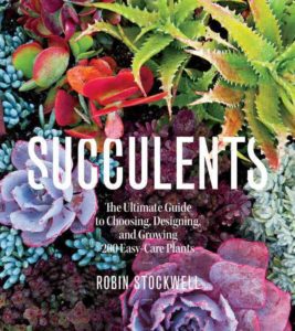 “Succulents are the ultimate easy-care plant: versatile, effortless to grow both indoors and outdoors, and drought tolerant. From Aloe and Agaves, to Senecio and Taciveria, this handbook by leading garden expert Robin Stockwell highlights 200 of the easiest, most useful, and gorgeous plants, and shares advice on care and cultivation. Readers will find inspiration for imaginative and exciting new ways to use succulents in striking garden designs, containers, vertical walls, and indoor arrangements, as well as step-by-step projects, such as living bouquets and terrarium ornaments.” (from the back cover)