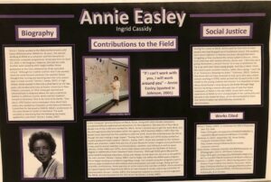 This winter we were thrilled to host Third Formers from Physics First, St. Paul’s introductory science course. Research & Instruction Librarian Ms. LaFlamme and Research & Outreach Librarian Ms. Seymour taught students to find, evaluate, and cite sources for their poster presentations on STEM scholars from underrepresented groups. This assignment was an opportunity to reflect on the life, contributions, and significance of social activists in the sciences. We wish we had space to share all of the great posters that came from this project! Here are just a few examples from Ms. Ruane’s sections, created by Ingrid Cassidy ’25, Olivia Hu ’25, and Matteo Lorenzo-Giguere ’25.