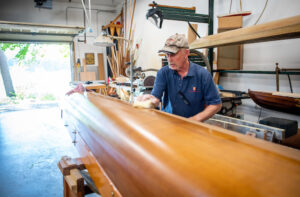 The boat made its way to King Boat Works, where it was scanned for its size and shape so that it could be replicated for the movie. Built in England, the movie versions of the boat are made of carbon fiber and made to look like the heavier wooden shells of old.