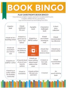 Have you noticed the Book Bingo flyers on the librarians’ office doors? We are all having fun playing this first annual reading challenge, and we hope you join in! The purpose of the challenge is to encourage us all to expand our reading interests and to have fun. Some categories include reading a book written by an author from within the disability community; reading a book published the year you were born; reading a book from a genre you’ve never read before, and more. Below are some librarian recommendations–see which categories you can fit them into!