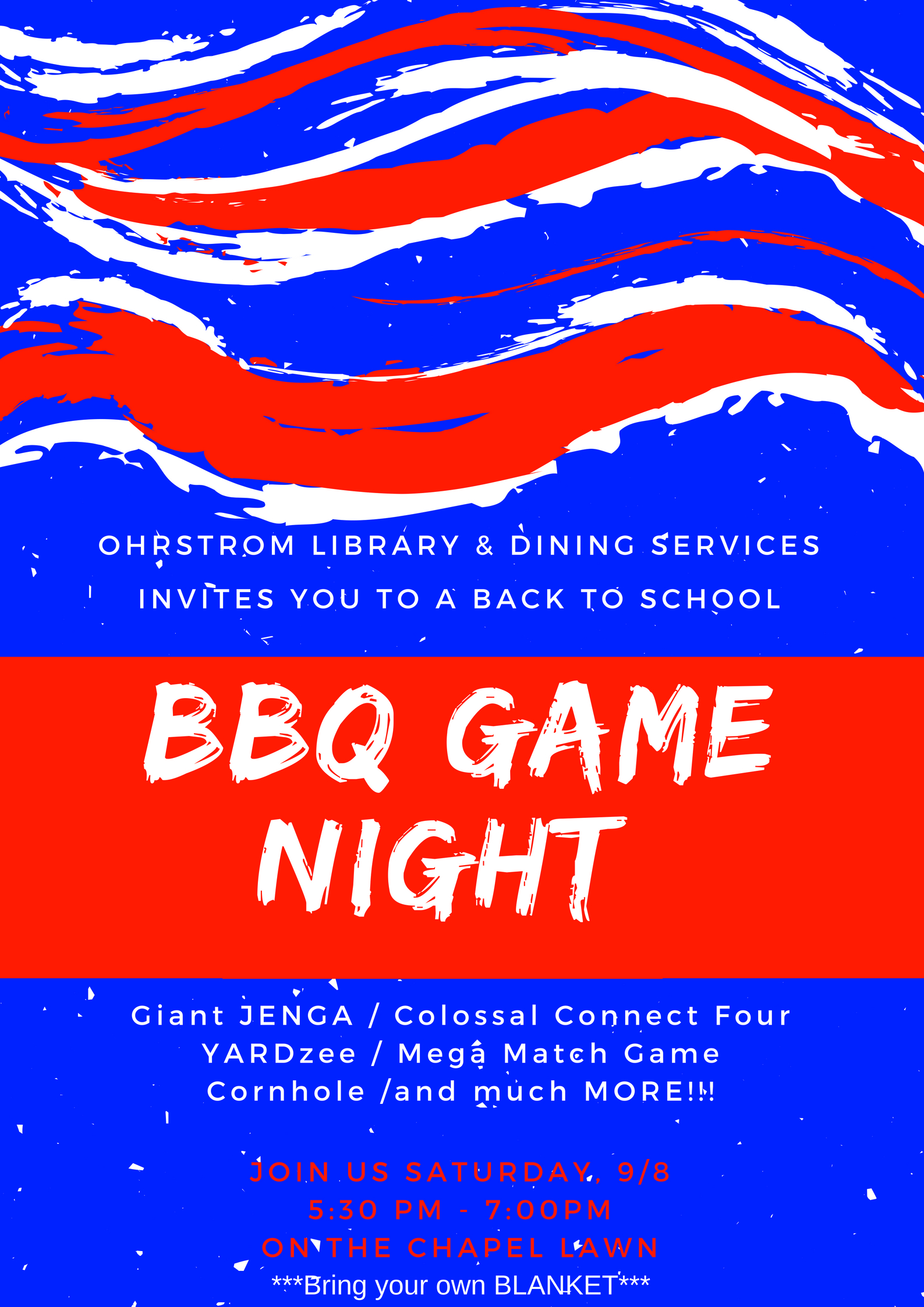 Please join us on the chapel lawn for a back to school BBQ Game Night!