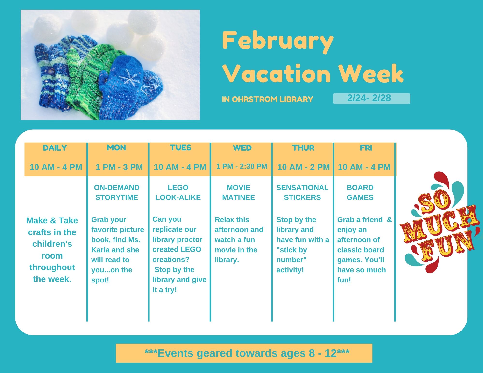 Join us in the library throughout the week for a variety of fun activities for our vacationing children.