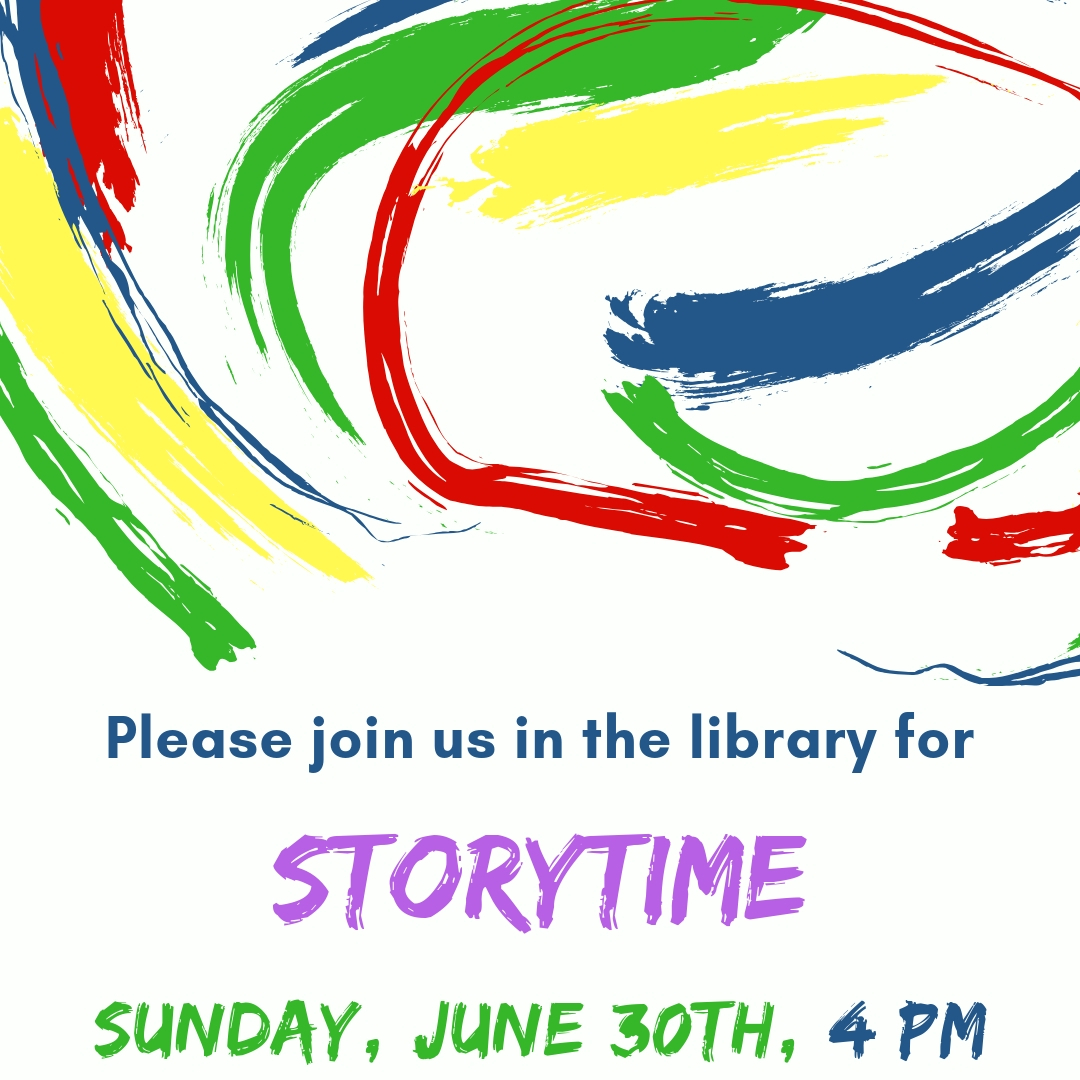 Take a break from the heat and join us in the library for storytime, this Sunday afternoon at 4 PM.  Stories are geared for ages 3-7, but all are welcome to attend!