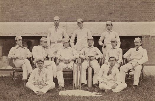 This photograph is of the First Eleven Old Hundred cricket team from the spring of 1880. Notations on this and other copies of the same photograph in the archives collection list the team members as: