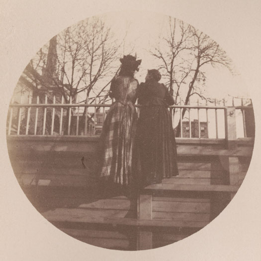 A Kodak No. 2 type photograph taken in 1890 by Theodore Mitchell Hastings, Form of 1894, while a student at St. Paul’s School. Shown in this photograph are two young women identified in a subsequent photograph as “Miss Smith & Miss Hastings”. Miss Hastings, in the dark dress, is most likely one of the photographer’s older sisters: Florence or Mabel Hastings.