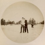 A Kodak No. 2 type photograph taken in 1890 by Theodore Mitchell Hastings, Form of 1894, while a student at St. Paul’s School. This photograph shows unidentified boys playing hockey on Lower School Pond. One boy appears to be adjusting his ice skate.