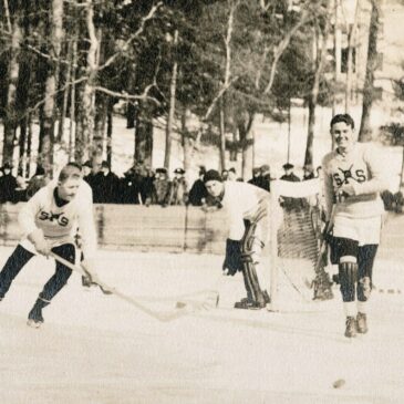 A photo of SPS hockey players on Lower School Pond – a game against Exeter that took place in February of 1916, won by SPS 10-3. #ohrstromlibrary #ohrstromlibrarydigitalarchives #throwback #throwbackthursday #tbt #hockey #icehockey #pondhockey #blackice #1916 #spshistory #iamsps