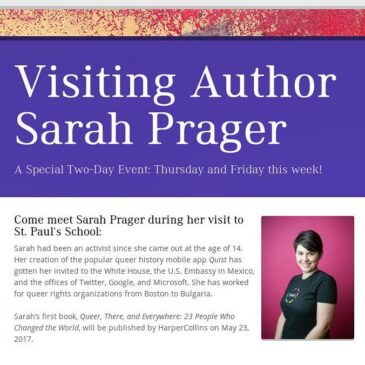 #sarahprager #visitingauthor #encounters #queerthere #harpercollins #lgbtqhistory #quist #iamsps